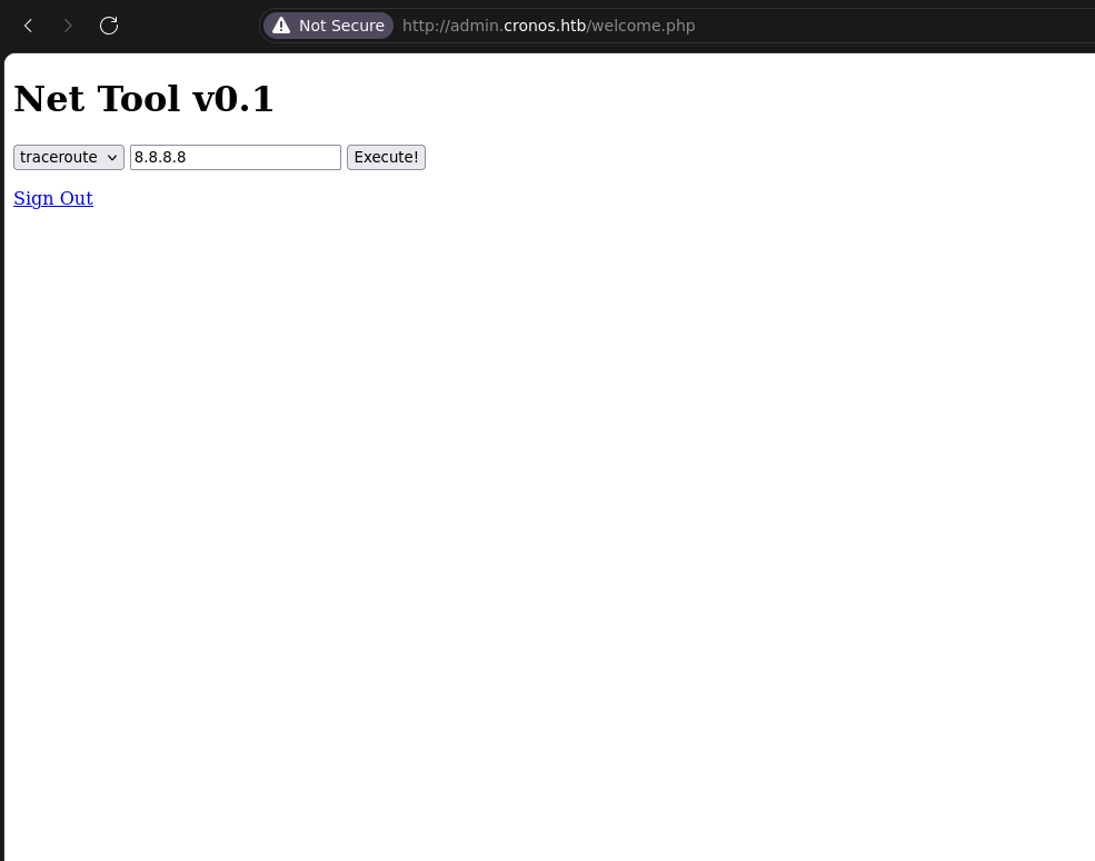 Con esto, ahora nos dirigimos al sitio cronos.htb.