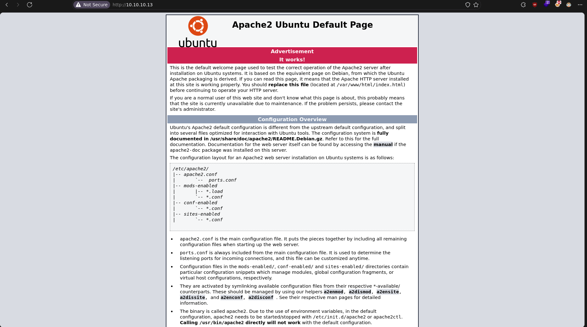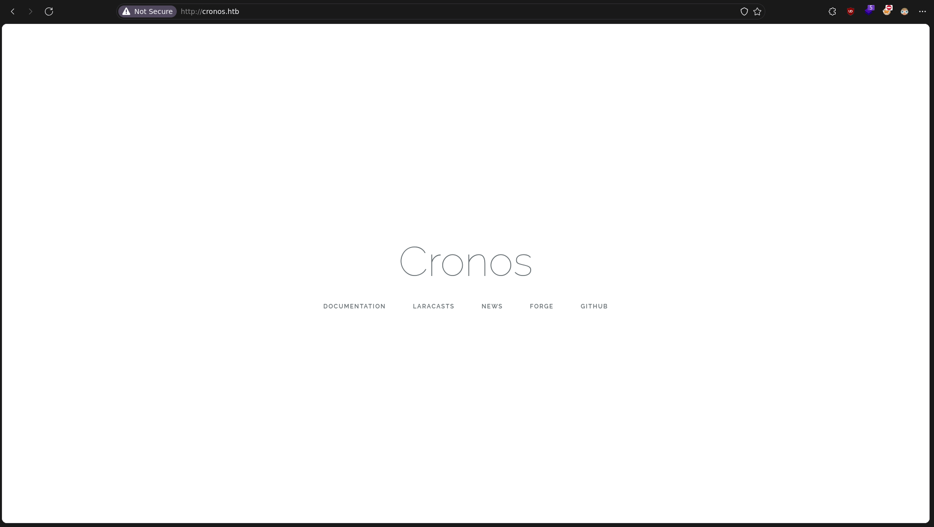 A primera vista, no parece haber nada interesante en este puerto, así que lo agregamos al archivo /etc/hosts con el siguiente comando:echo "10.10.10.13 cronos.htb" | sudo tee -a /etc/hosts.