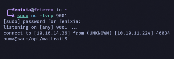 1 | puma@sau:/opt/maltrail$ ^Z |