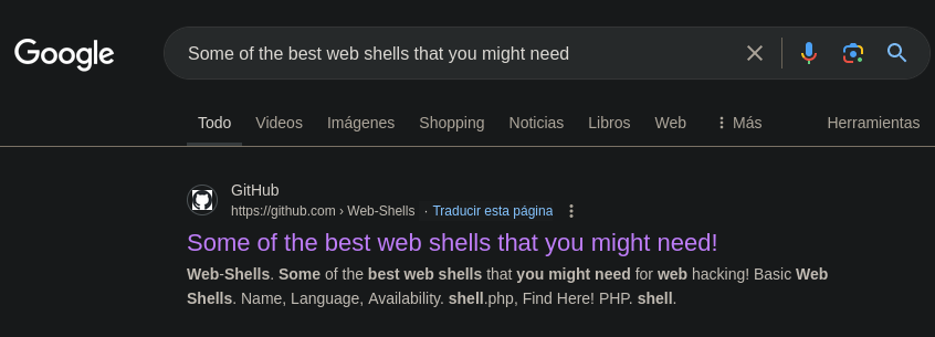 El texto <!--Some of the best web shells that you might need ;)--> no me suena, así que procedamos a buscarlo en Google para ver qué encontramos.