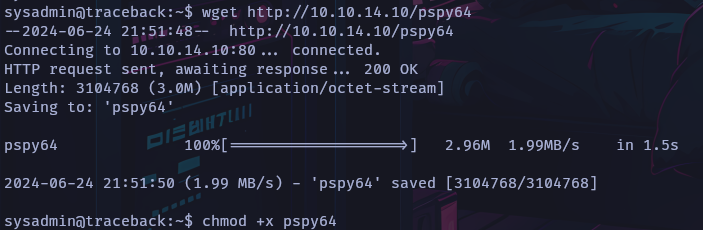 La escalada de privilegios en sistemas GNU/Linux consiste en enumerar y buscar algún archivo que podamos editar y ejecutar por un permiso mal administrado. En este caso, no encontramos nada interesante al principio, así que optamos por buscar alguna tarea que se esté ejecutando cada cierto tiempo. Para esto, podemos emplear un script en bash o, en este caso, PsPy.