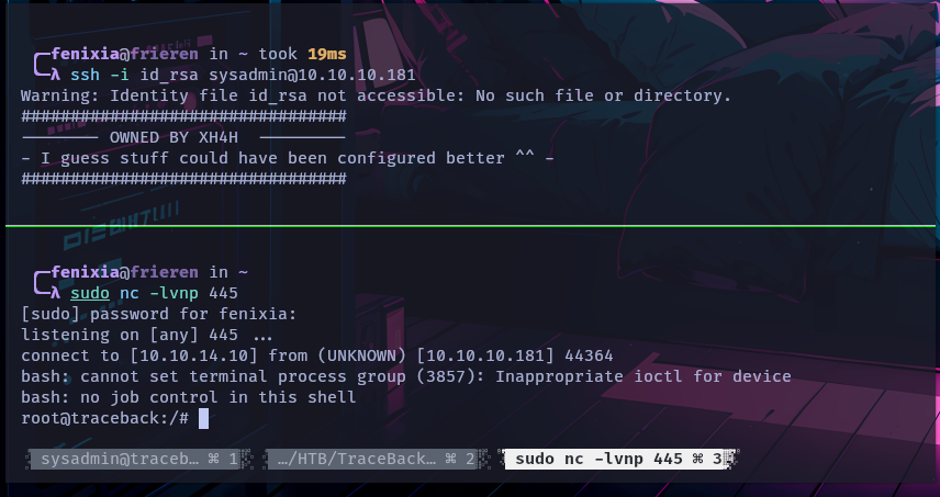 Colocándonos en escucha por el puerto 445, y conectándonos por SSH, la maquina nos regresa una reverse shell:
