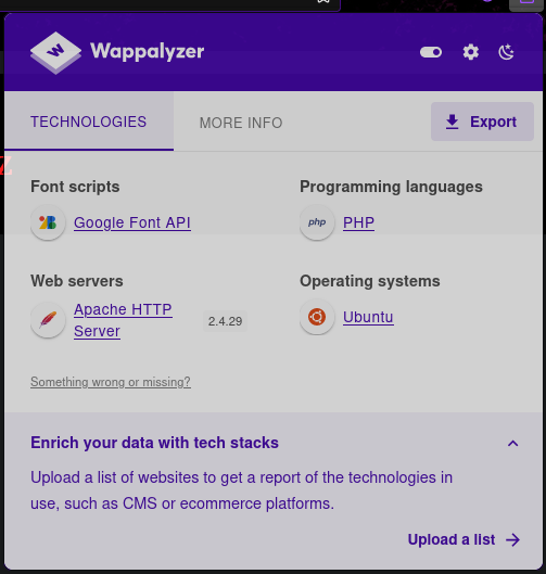 En este repositorio podemos encontrar una lista de webshells para PHP, ASP y JSP, viendo el sitio con Wappalyzer nos encontramos que el sitio corre bajo php.